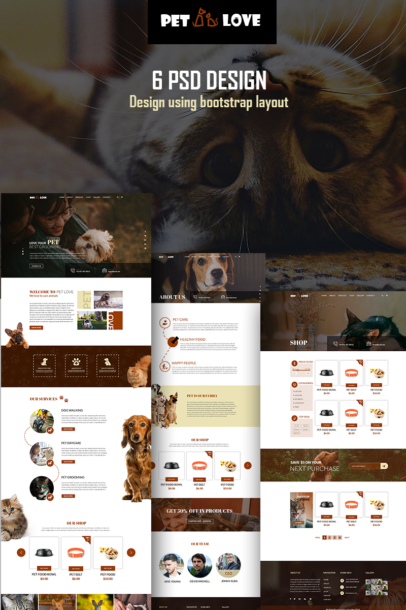 Download PSD шаблон "PetLove - Multipurpose PSD Template" / PetLove - Multipurpose PSD Template - PSD шаблон на тему графика psd theme template pet animal shop