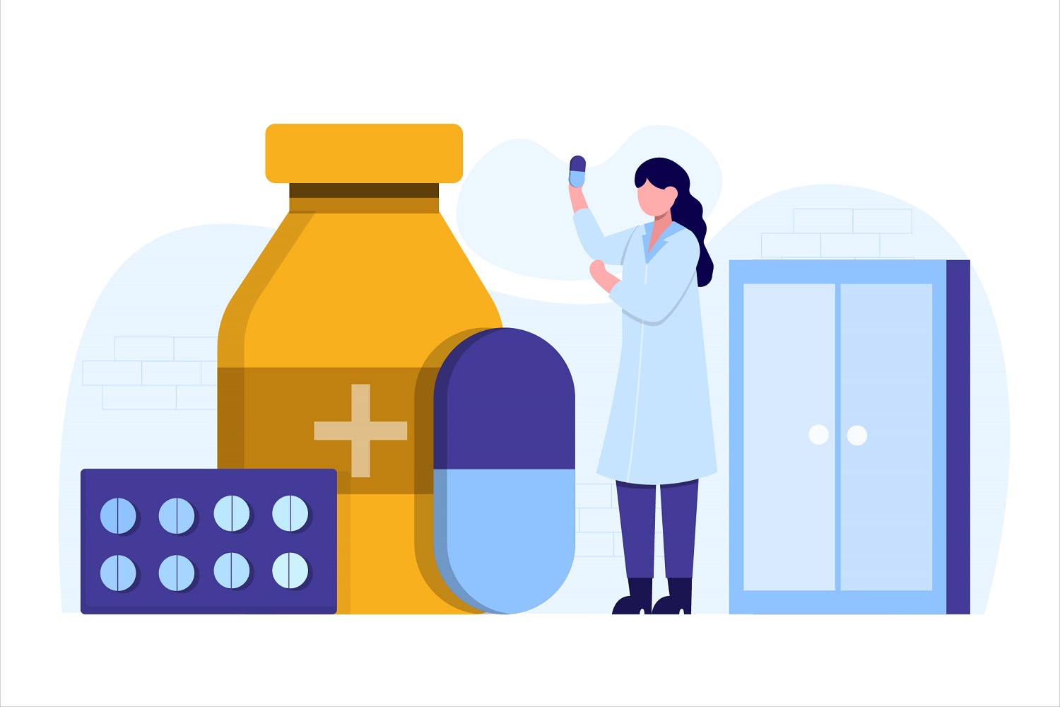 Download Vector "Pharmacy Drugs Flat Illustration - Vector Image" / Pharmacy Drugs Flat Illustration - Vector Image - Vector на тему графика illustration,vector,flat,graphic,design,pharmacy,medicine,pharmacist,laboratory,medical,research,drug,doctor,hospital,clinic