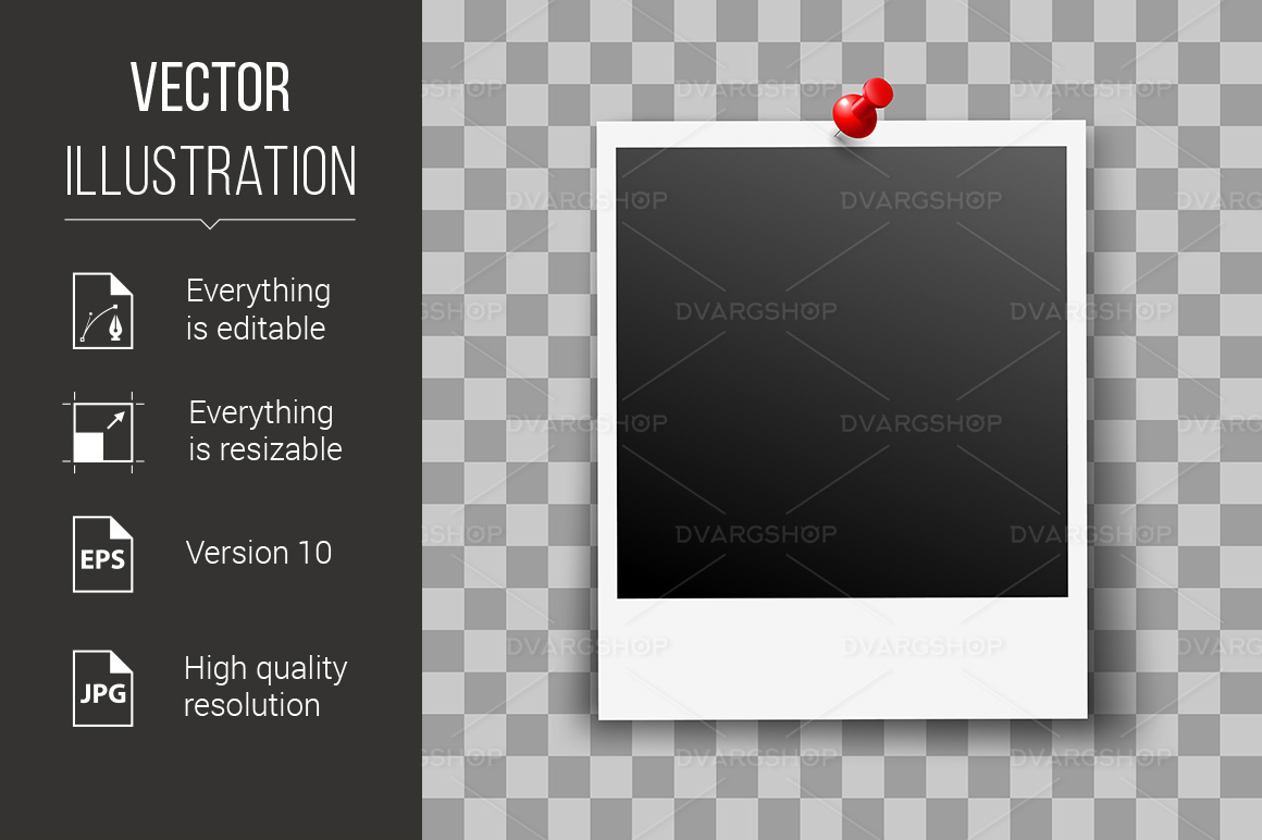 Download Vector "Photo Frame - Vector Image" / Photo Frame - Vector Image - Vector на тему графика photo,frame,pin,transparent,retro,red,background,size,paper,black,decorative,board,object,camera,film,icon,photography,greeting,vector,isolated