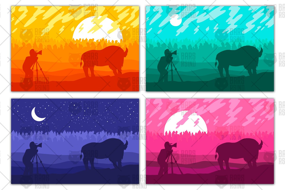 Download Vector "Photographer Photographs Bison - Vector Image" / Photographer Photographs Bison - Vector Image - Vector на тему графика wild,illustration,vector,background,landscape,retro,animal,nature,silhouette,old,country,mountain,vintage,wilderness,panorama,outdoor,travel,trip,vacation,forest