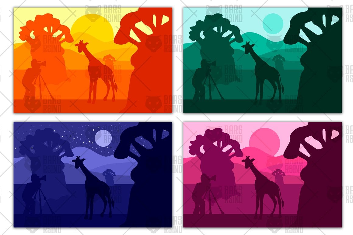 Download Vector "Photographer Photographs Giraffe - Vector Image" / Photographer Photographs Giraffe - Vector Image - Vector на тему графика flat,safari,sunrise,africa,wildlife,giraffe,park,wild,hill,nature,animal,scene,savanna,travel,kenya,photograher,videographer,baobab,night,sunset