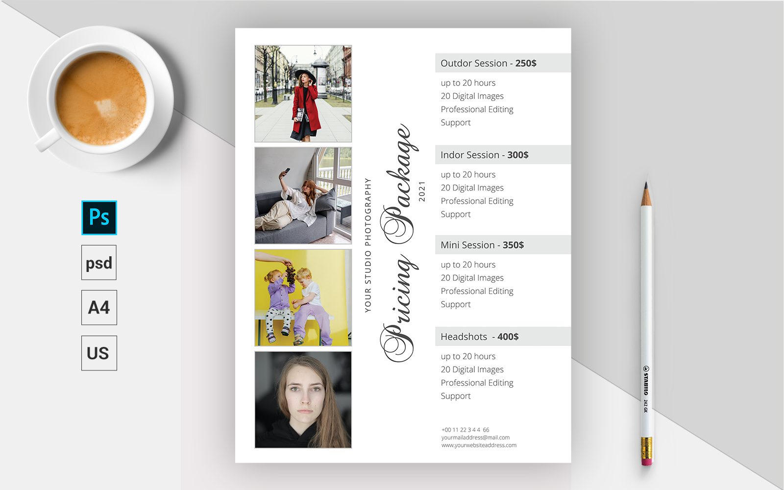 Download Фирменный стиль "Photography Pricing Guide - Corporate Identity Template" / Photography Pricing Guide - Corporate Identity Template - Фирменный стиль на тему графика photography pricing template,photography price list,photography price sheet,photographer pricing list,photoshop template,pricing guide,psd,a4 paper,us letter,printable,editable,clean,new,down