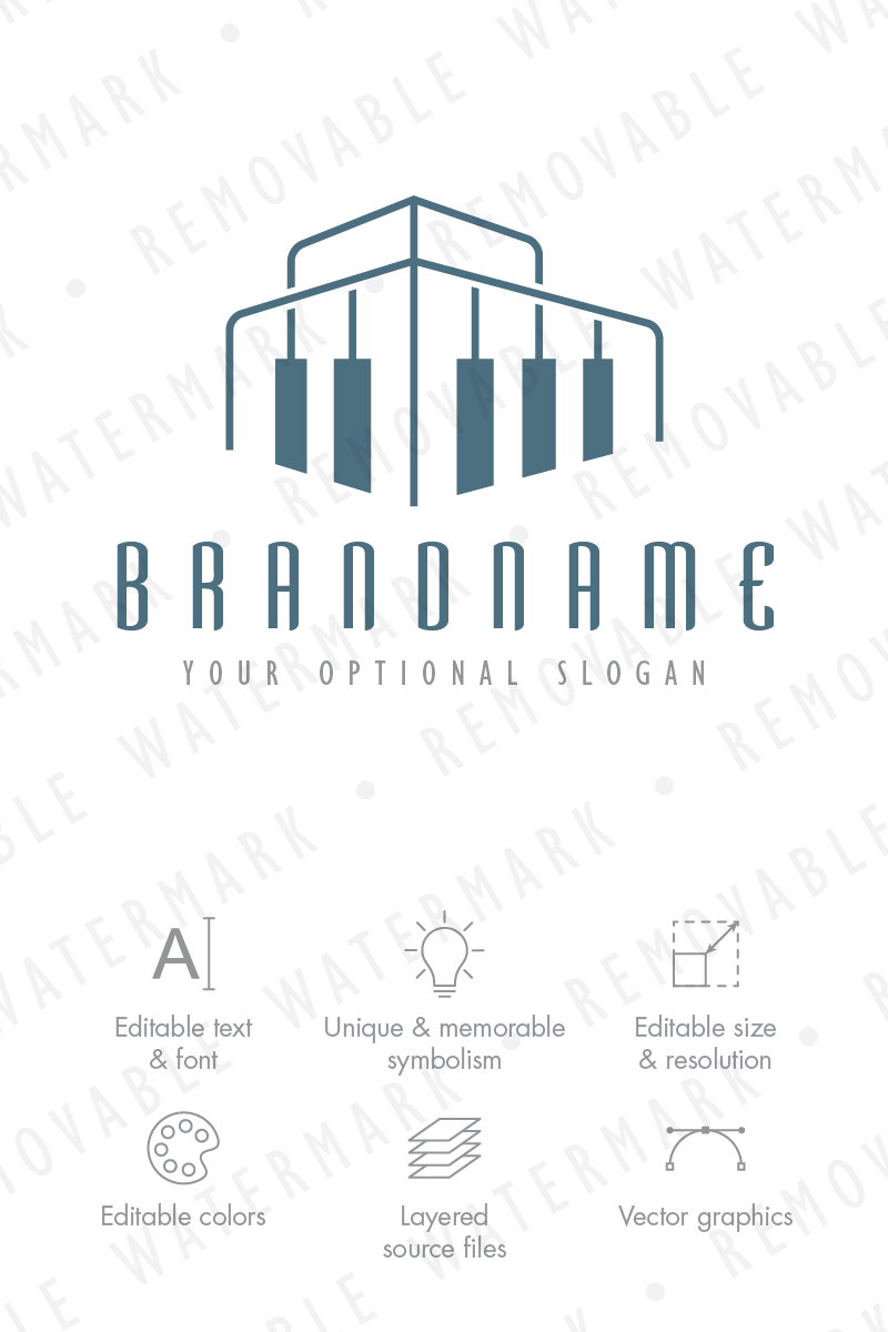 Download Шаблон логотипа "Piano Architecture - Logo Template" / Piano Architecture - Logo Template - Шаблон логотипа на тему графика construction real estate art sound building music architecture play perspective instrument keyboard piano song orchestra realty audio logo design template