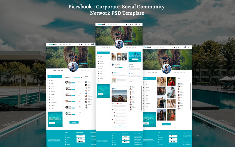 Download PSD шаблон "Picesbook - Corporate Social Community Network PSD Template" / Picesbook - Corporate Social Community Network PSD Template - PSD шаблон на тему графика design,freelance,personal professional,portfolio,site portfolio,gallery,powerful resume,personal resume