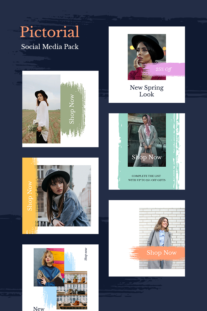Download Шаблон для соцсетей "Pictorial Instagram Templates for Social Media" / Pictorial Instagram Templates for Social Media - Шаблон для соцсетей на тему графика brush artistic instagram stories facebook posts psd templates promotion style multicolor colorful feminine pastel fashion beauty store shop social trendy