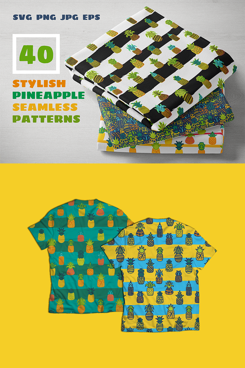 Download Иллюстрация "Pineapples Patterns Set - Illustration" / Pineapples Patterns Set - Illustration - Иллюстрация на тему графика seamless pattern pineapple tropical exotic fruit summer seasonal tasty nutrition organic vitamin ananas vegetarian fresh vector ornament print backdrop background