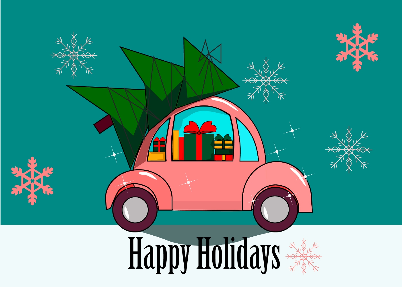 Download Иллюстрация "Pink Christmas car - Illustration" / Pink Christmas car - Illustration - Иллюстрация на тему графика pink car,christmas car,christmas card,christmas illustration,christmas tree car,christmas bug,christmas truck,volkswagen beetle,christmas tree truck,pink christmas card