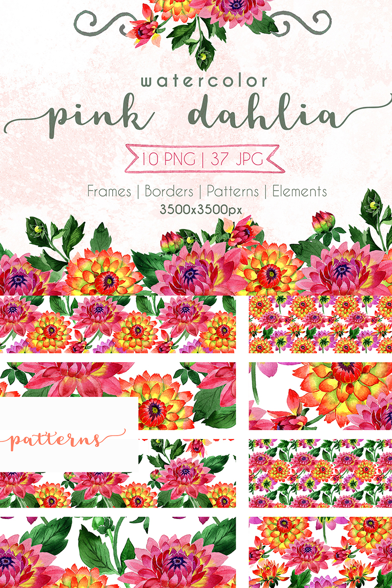 Download Иллюстрация "Pink Dahlia PNG Watercolor Set - Illustration" / Pink Dahlia PNG Watercolor Set - Illustration - Иллюстрация на тему графика watercolor illustration delicate pink dahlia drawing background colorful drawn paint leaf plant wildflower seasonal foliage flower sprout stem textile botanical