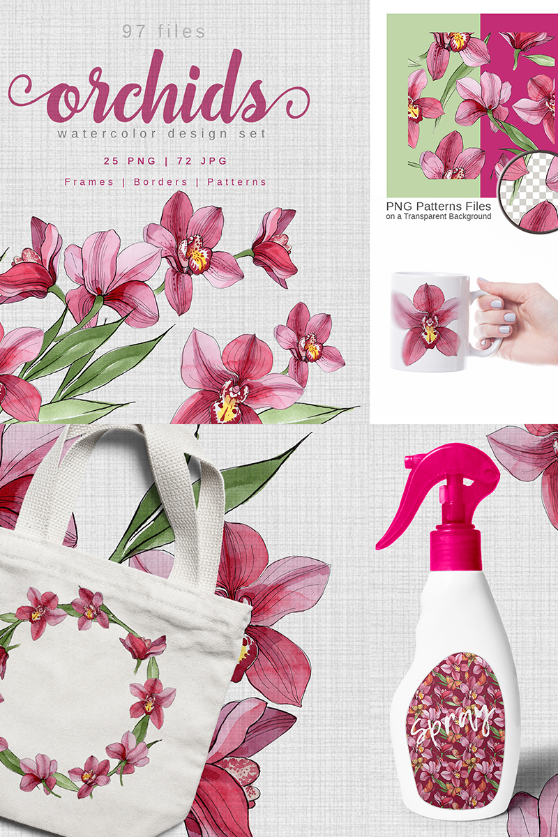 Download Иллюстрация "Pink Orchids Watercolor png - Illustration" / Pink Orchids Watercolor png - Illustration - Иллюстрация на тему графика pink orchids watercolor png