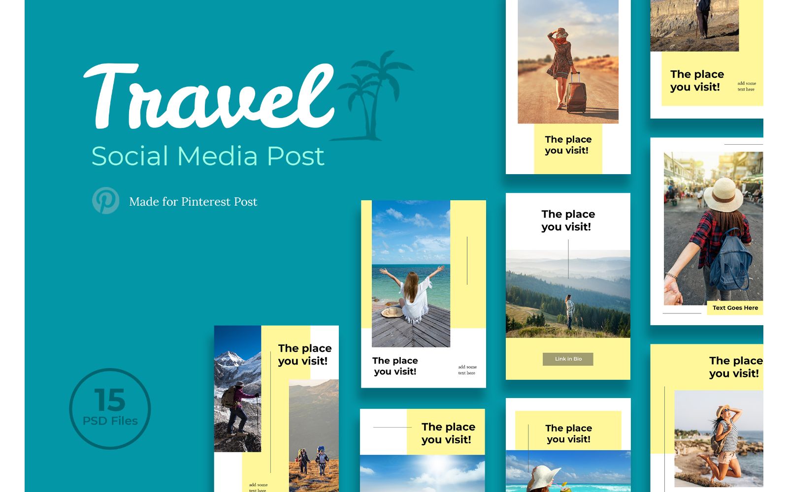Download Шаблон для соцсетей "Pinterest Travel Social Media Template" / Pinterest Travel Social Media Template - Шаблон для соцсетей на тему графика adobe photoshop,branding,business,creativities,elements,information,interface,lifestyle,mobile,mockup,pinterest,social,media,template,trendy