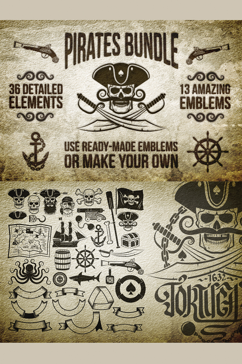 Download Иллюстрация "Pirate Bundle - Illustration" / Pirate Bundle - Illustration - Иллюстрация на тему графика emblem badge label illustration banner professional poster stamp ribbon symbol