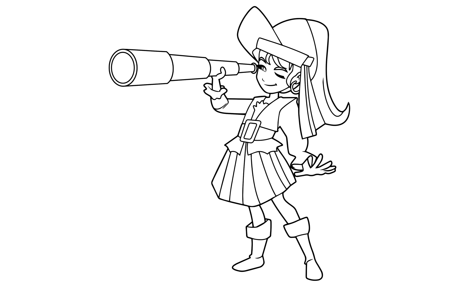 Download Иллюстрация "Pirate Girl Line Art - Illustration" / Pirate Girl Line Art - Illustration - Иллюстрация на тему графика girl,pirate,costume,party,fun,kid,child,carnival,coloring,book,line art,illustration,vector,cartoon,character,copy space,cute,funny,smiling,happy