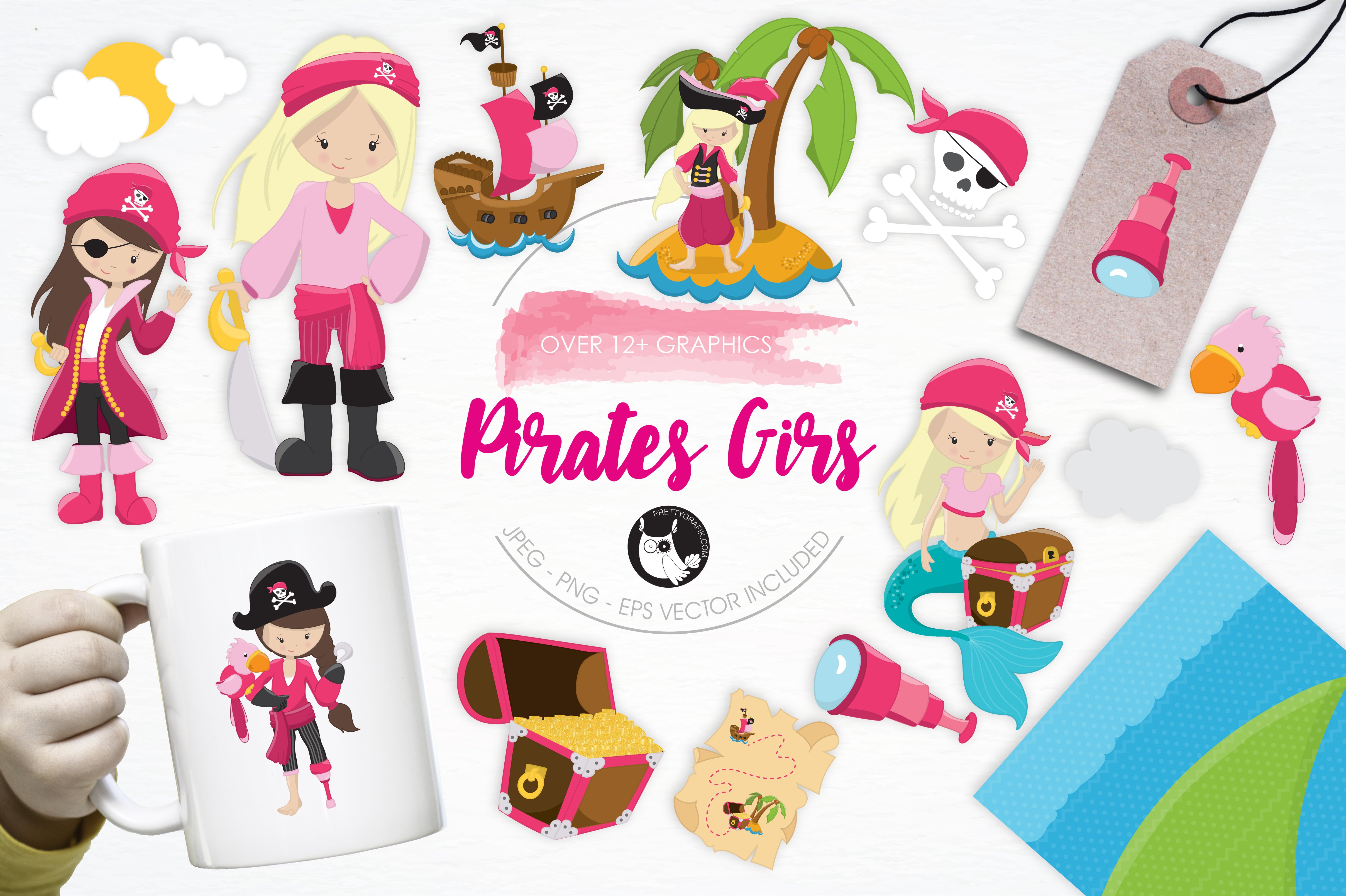 Download Vector "Pirates Girls illustration pack - Vector Image" / Pirates Girls illustration pack - Vector Image - Vector на тему графика illustration,vector,graphics,clipart,island,clip art,icon,ship,eps,prettygrafik,girls,pirates,parrot,treasure,pirates girls