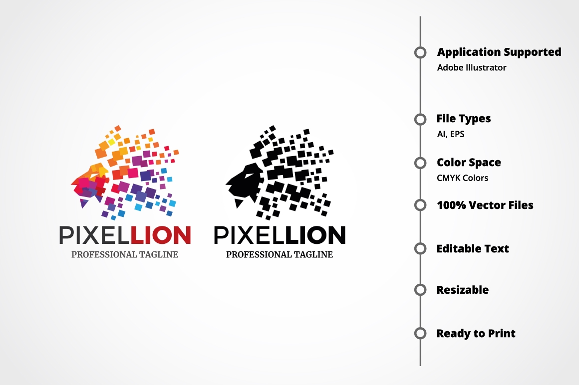 Download Шаблон логотипа "Pixel Lion Logo Template" / Pixel Lion Logo Template - Шаблон логотипа на тему графика animals,branding,cat,company,corporate,creative,cyber,data,digital,finance,geometric,head,internet,lion,majestic,media,mobile,nano,network,pixel