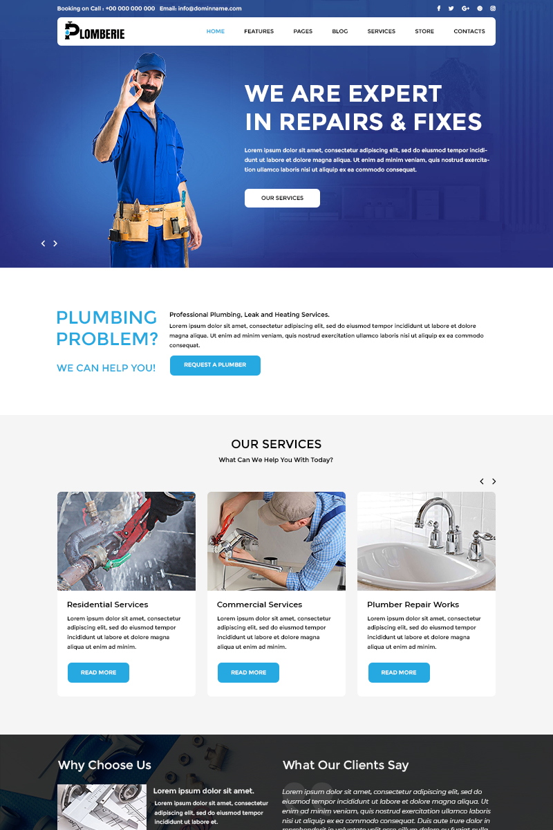 Download PSD шаблон "Plomberie - Plumbing PSD Template" / Plomberie - Plumbing PSD Template - PSD шаблон на тему сантехника plumbing plumber theme template psd photoshop
