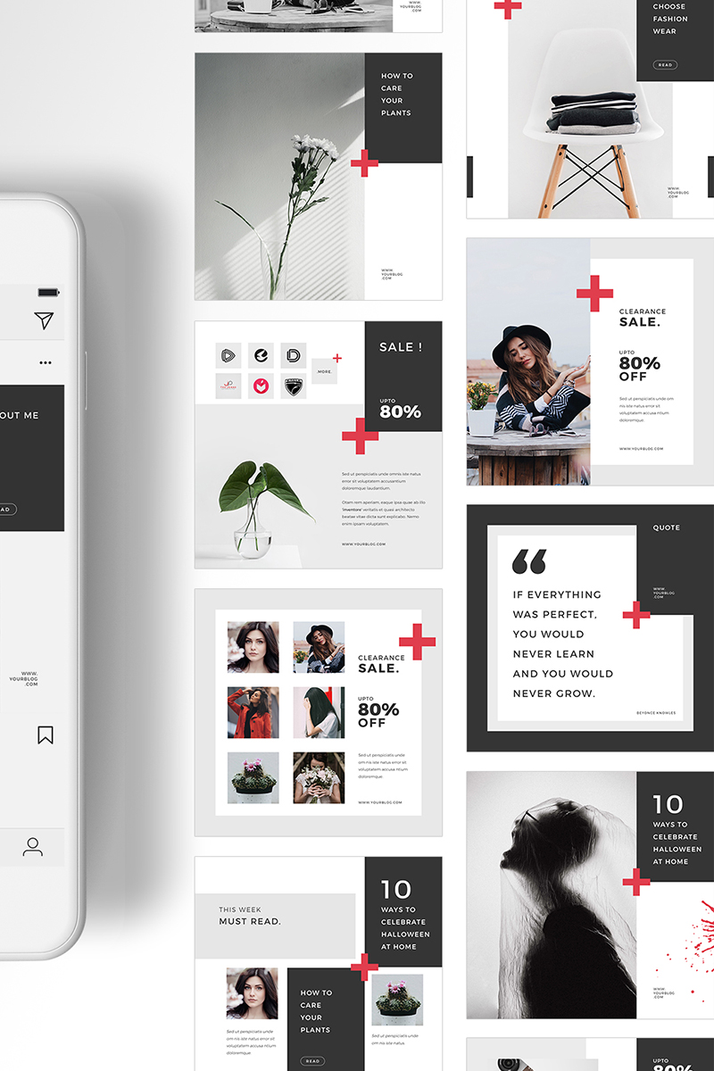 Download Шаблон для соцсетей "Plus - Pack Social Media Template" / Plus - Pack Social Media Template - Шаблон для соцсетей на тему графика social media pack kit instagram facebook stories twitter pinterest minimal modern business progressive layout new best popular fashion pastel branding