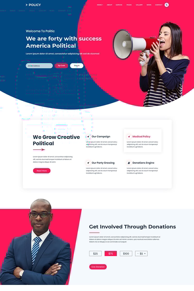 Download PSD шаблон "Policy - Political PSD Template" / Policy - Political PSD Template - PSD шаблон на тему политический кандидат campaign candidate committee donate donation elections events government political