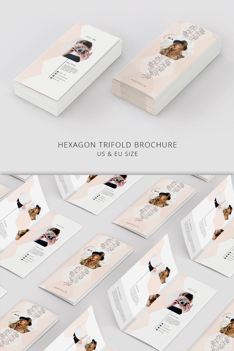 Download Фирменный стиль "Portfolio Trifold Flyer Hexagon - Corporate Identity Template" / Portfolio Trifold Flyer Hexagon - Corporate Identity Template - Фирменный стиль на тему графика trifold brochure flyer hexagon portfolio lifestyle fashion product advertising multipurpose clean minimalist minimalism creative a4 us letter floral flowers beauty