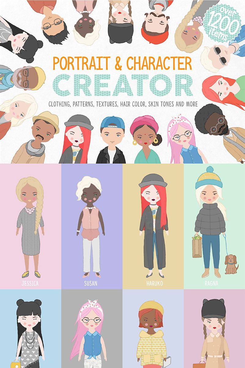 Download Иллюстрация "Portrait Character Creator - Illustration" / Portrait Character Creator - Illustration - Иллюстрация на тему графика portrait character creator people human clothes clothing hair logo logos photo resume pattern branding modern blog wedding family woman man
