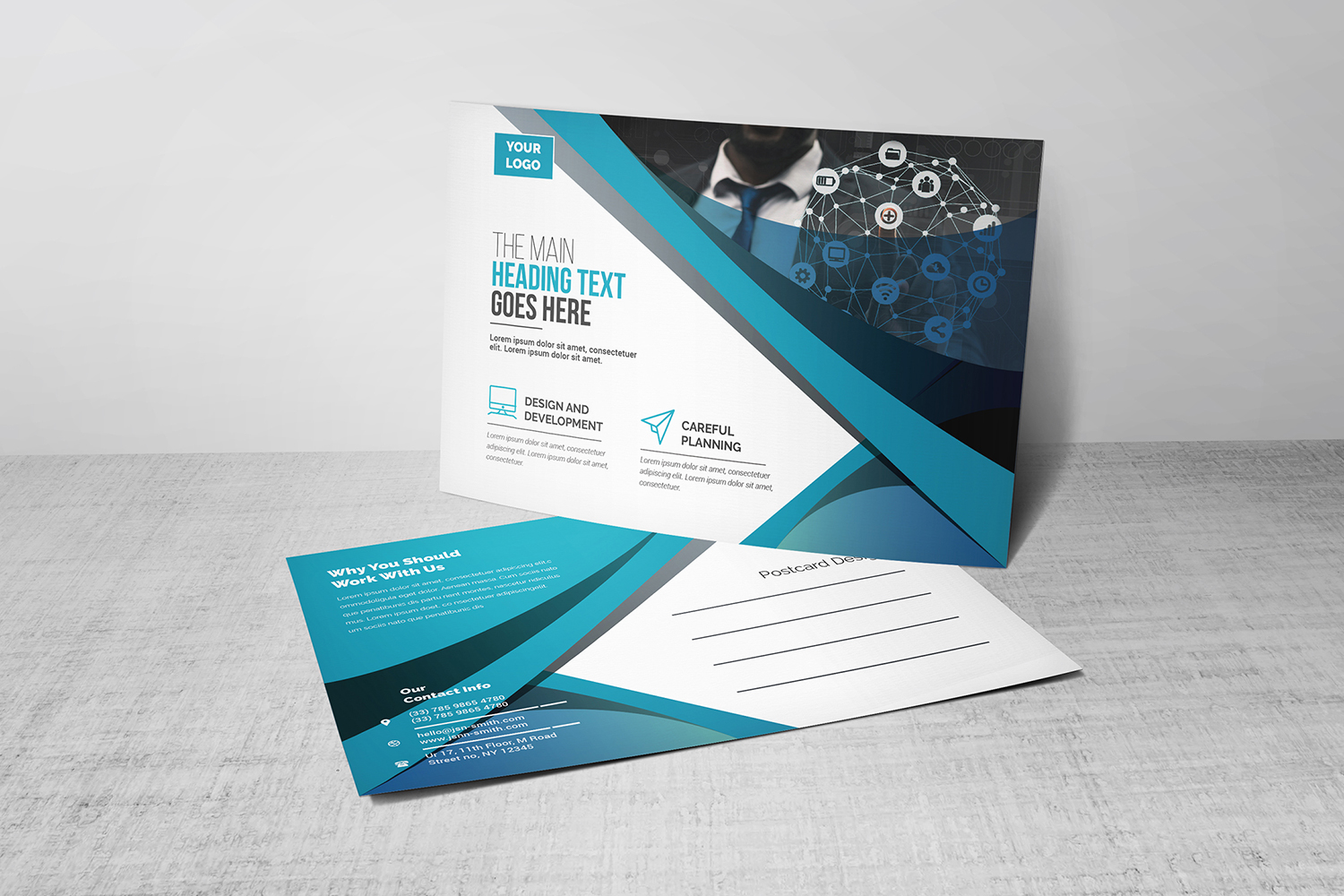 Download Фирменный стиль "Postcard - Corporate Identity Template" / Postcard - Corporate Identity Template - Фирменный стиль на тему графика blue,design,flyer,graphic,green,landscape,modern,official,print,ready,professional,simple,standard,web,white