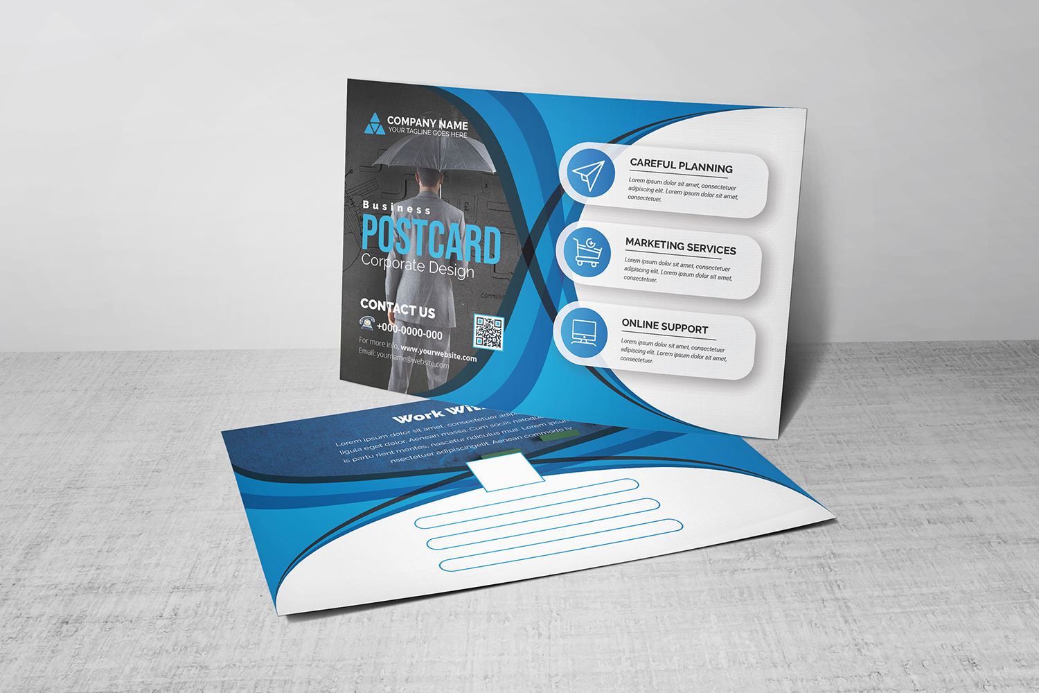 Download Фирменный стиль "Postcard - Corporate Identity Template" / Postcard - Corporate Identity Template - Фирменный стиль на тему графика blue,design,flyer,graphic,green,landscape,modern,official,print,ready,professional,simple,standard,web,white