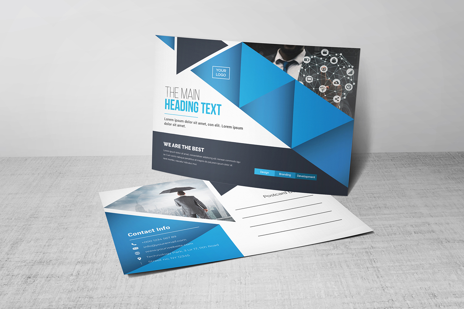 Download Фирменный стиль "Postcard - Corporate Identity Template" / Postcard - Corporate Identity Template - Фирменный стиль на тему графика blue,design,flyer,graphic,green,landscape,modern,official,print,ready,professional,simple,standard,web,white