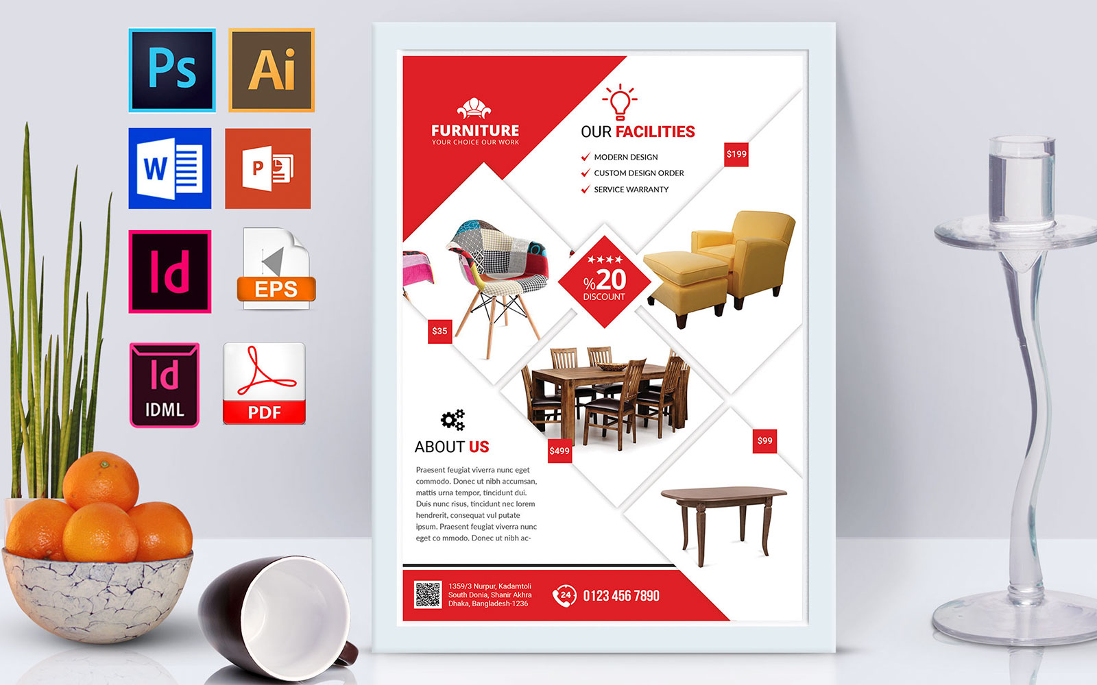 Download Фирменный стиль "Poster | Furniture Shop Vol-03 - Corporate Identity Template" / Poster | Furniture Shop Vol-03 - Corporate Identity Template - Фирменный стиль на тему графика furniture,furniture shop,furniture flyer,furniture shop flyer,wood furniture,steel furniture,table,showcase,chair,furniture handbill,furniture print template,furniture template,furniture baza
