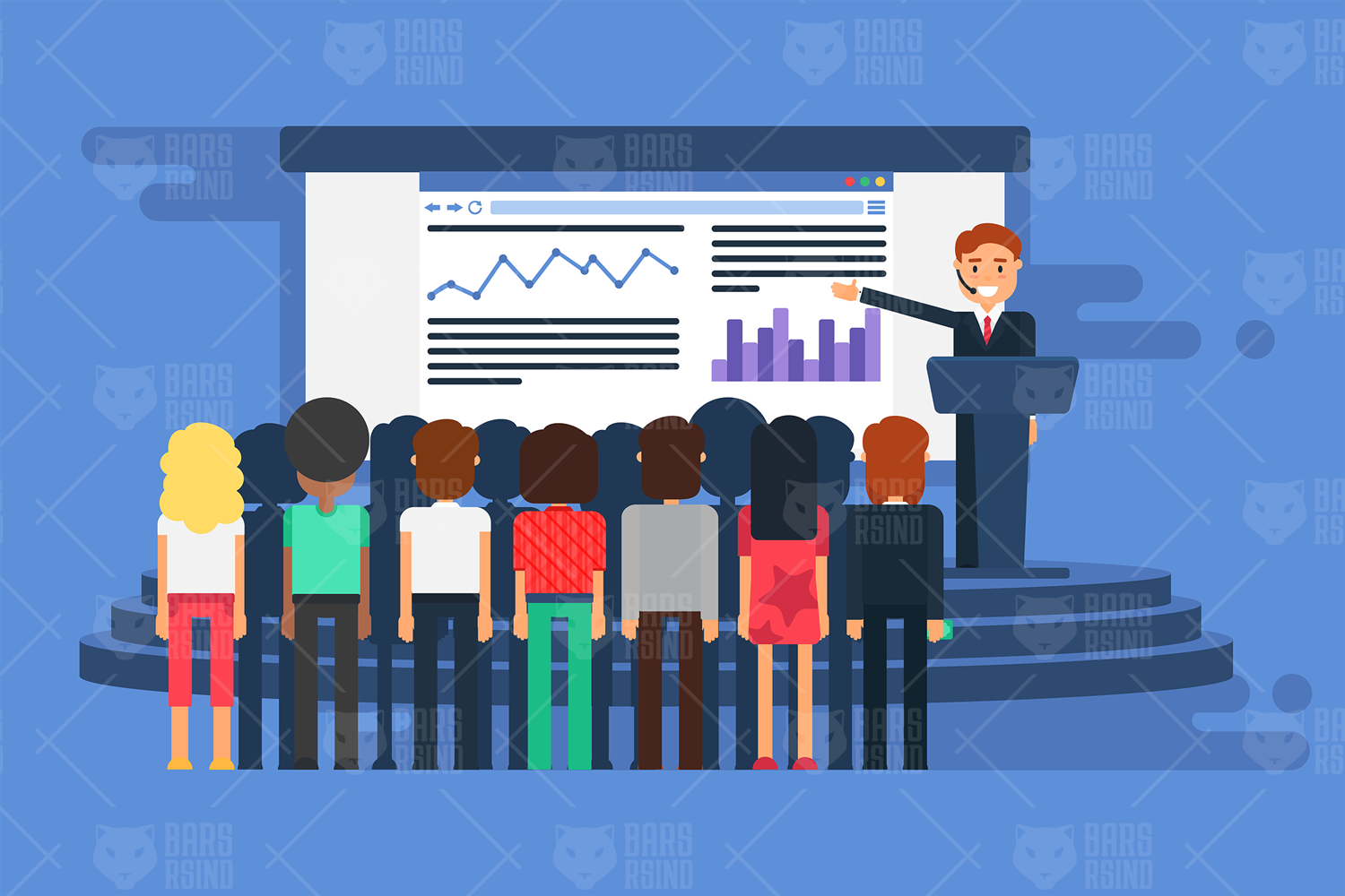 Download Vector "Presentation Illustration - Vector Image" / Presentation Illustration - Vector Image - Vector на тему графика audience,auditorium,briefing,business,businessman,classroom,coaching,communication,conference,congress,debate,design,discussion,education,election,event,flat,group,icon,illustration