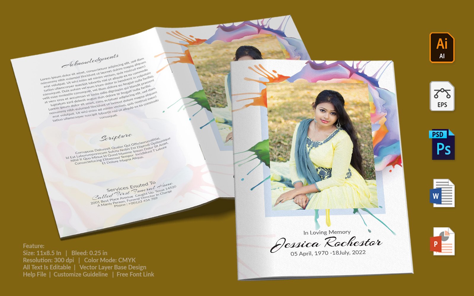 Download Фирменный стиль "Printable Funeral Program - Corporate Identity Template" / Printable Funeral Program - Corporate Identity Template - Фирменный стиль на тему графика printable,funeral,memorial,obituary,bituary,program,service,template,brochure,card,custom,photoshop,illuastator,vector,word,powerpoint,psd,ai,eps,docx