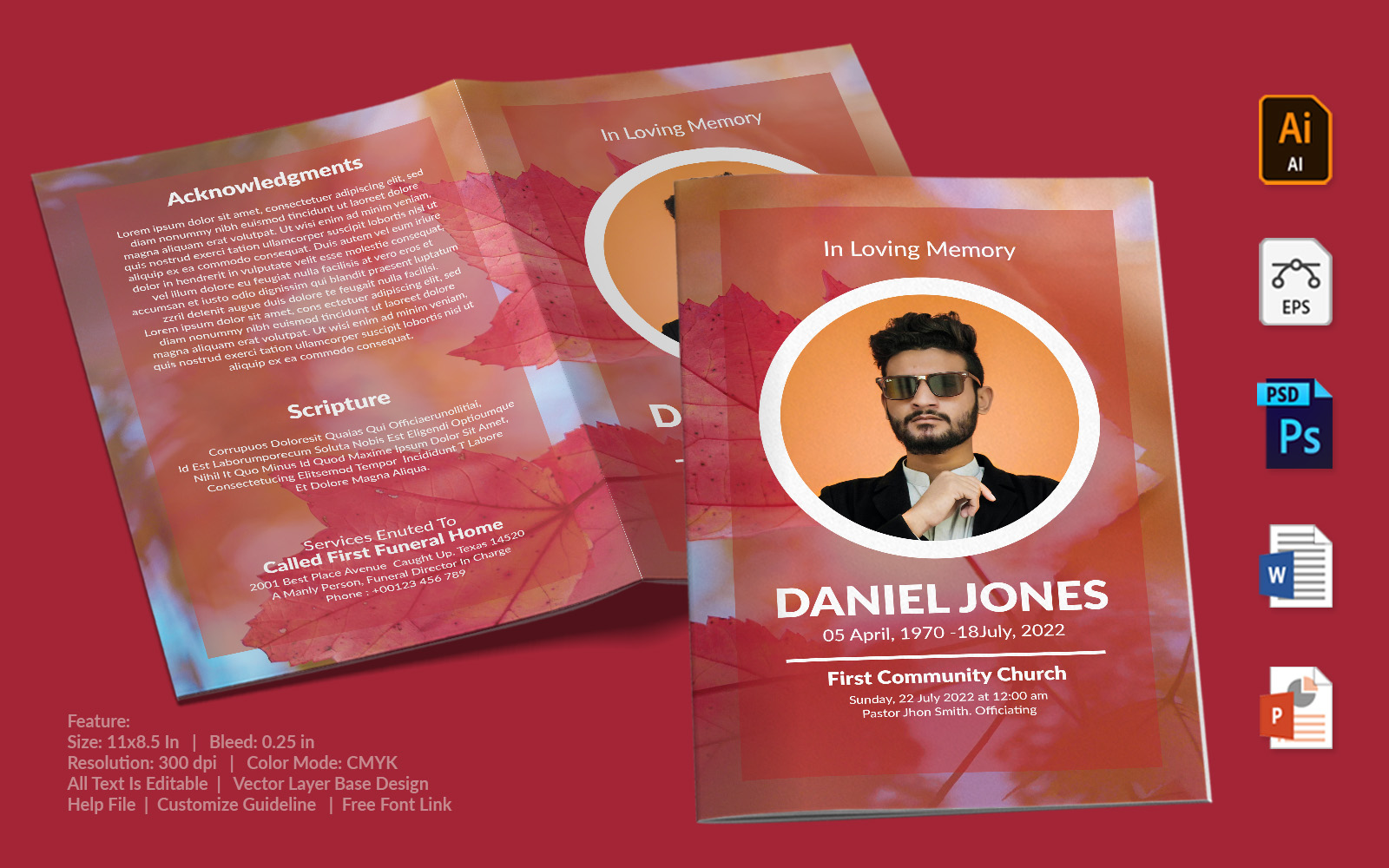 Download Фирменный стиль "Printable Funeral Program - Corporate Identity Template" / Printable Funeral Program - Corporate Identity Template - Фирменный стиль на тему графика printable,funeral,memorial,obituary,bituary,program,service,template,brochure,card,custom,photoshop,illuastator,vector,word,powerpoint,psd,ai,eps,docx