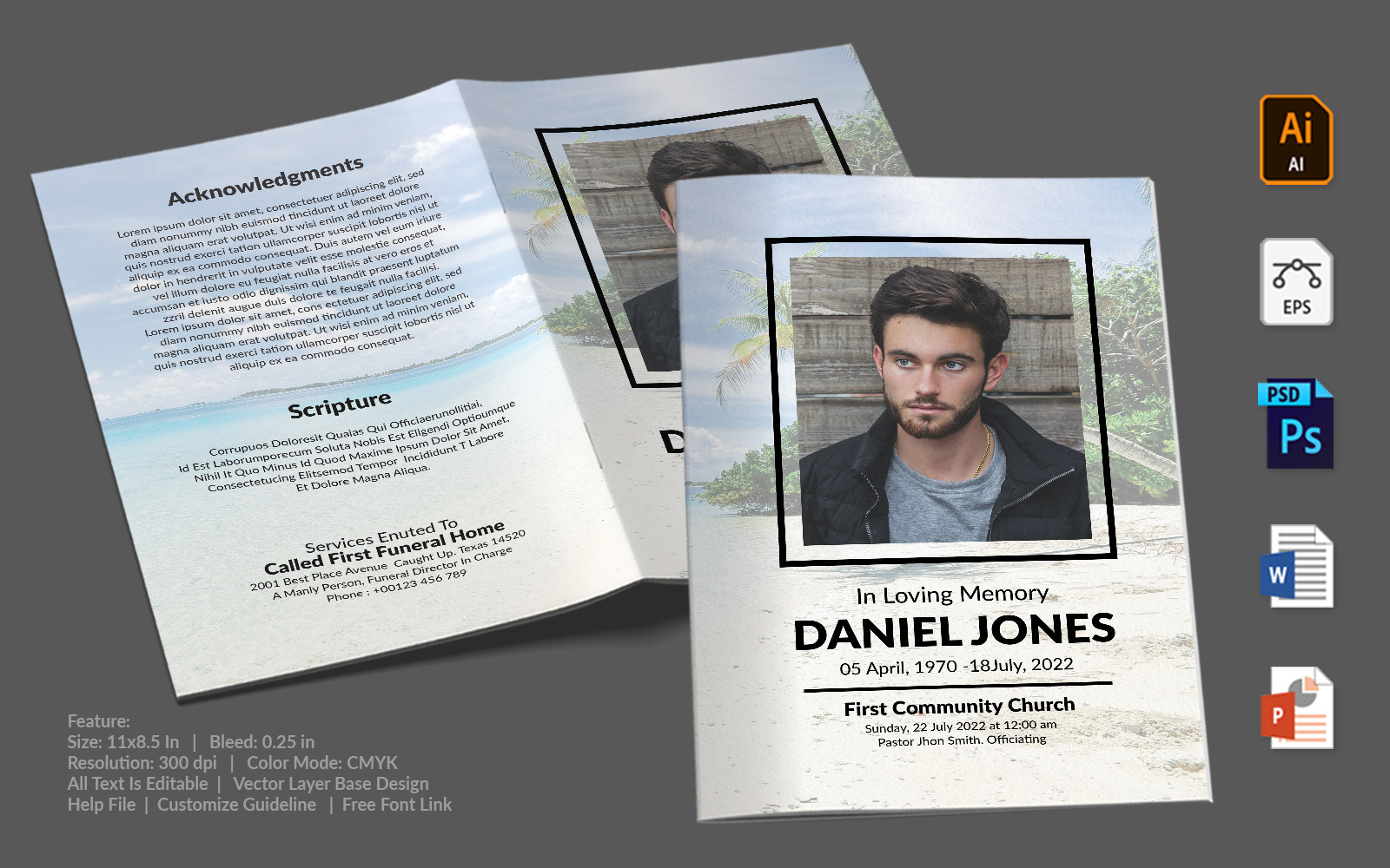 Download Фирменный стиль "Printable Funeral Program - Corporate Identity Template" / Printable Funeral Program - Corporate Identity Template - Фирменный стиль на тему графика printable,funeral,memorial,obituary,bituary,program,service,template,brochure,card,custom,photoshop,illuastator,vector,word,powerpoint,psd,ai,eps,docx