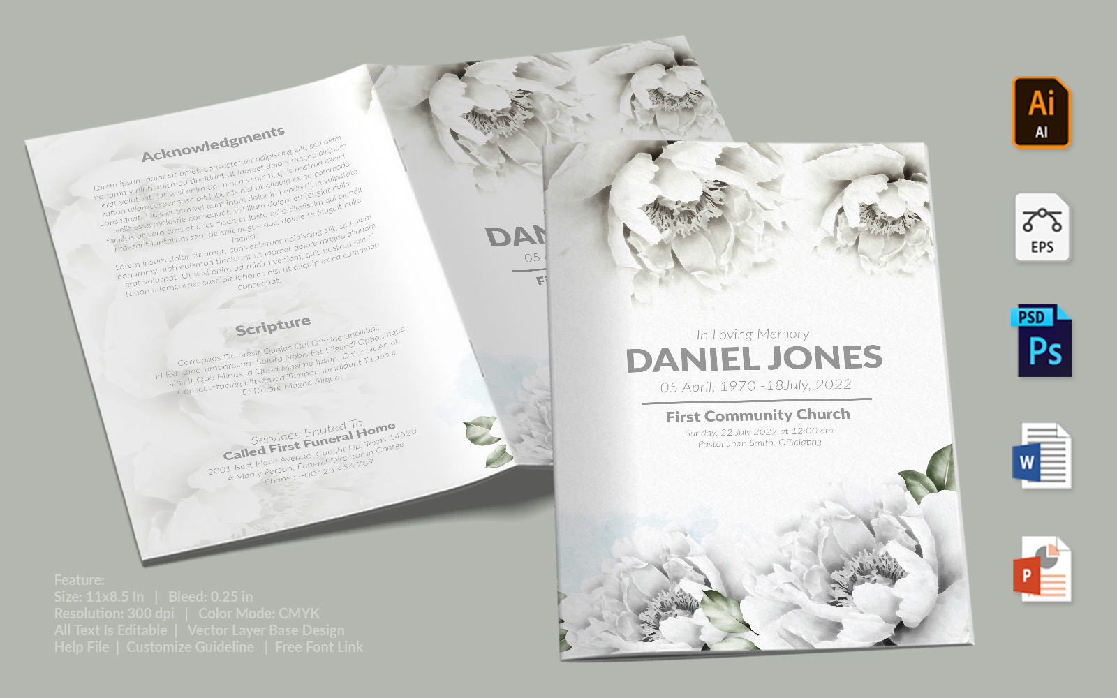 Download Фирменный стиль "Printable Funeral Program - Corporate Identity Template" / Printable Funeral Program - Corporate Identity Template - Фирменный стиль на тему графика printable,funeral,memorial,obituary,bituary,program,service,template,brochure,card,custom,photoshop,illuastator,vector,word,powerpoint,psd,ai,eps,docx