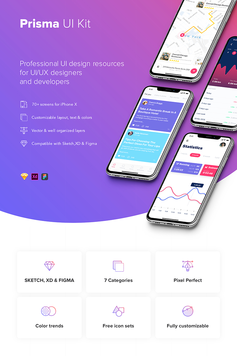 Download UI элементы "Prisma UI Kit " / Prisma UI Kit - UI элементы на тему графика app ui social statistics articles interface ios material kit mobile login sign up profile map tracking menu on boarding