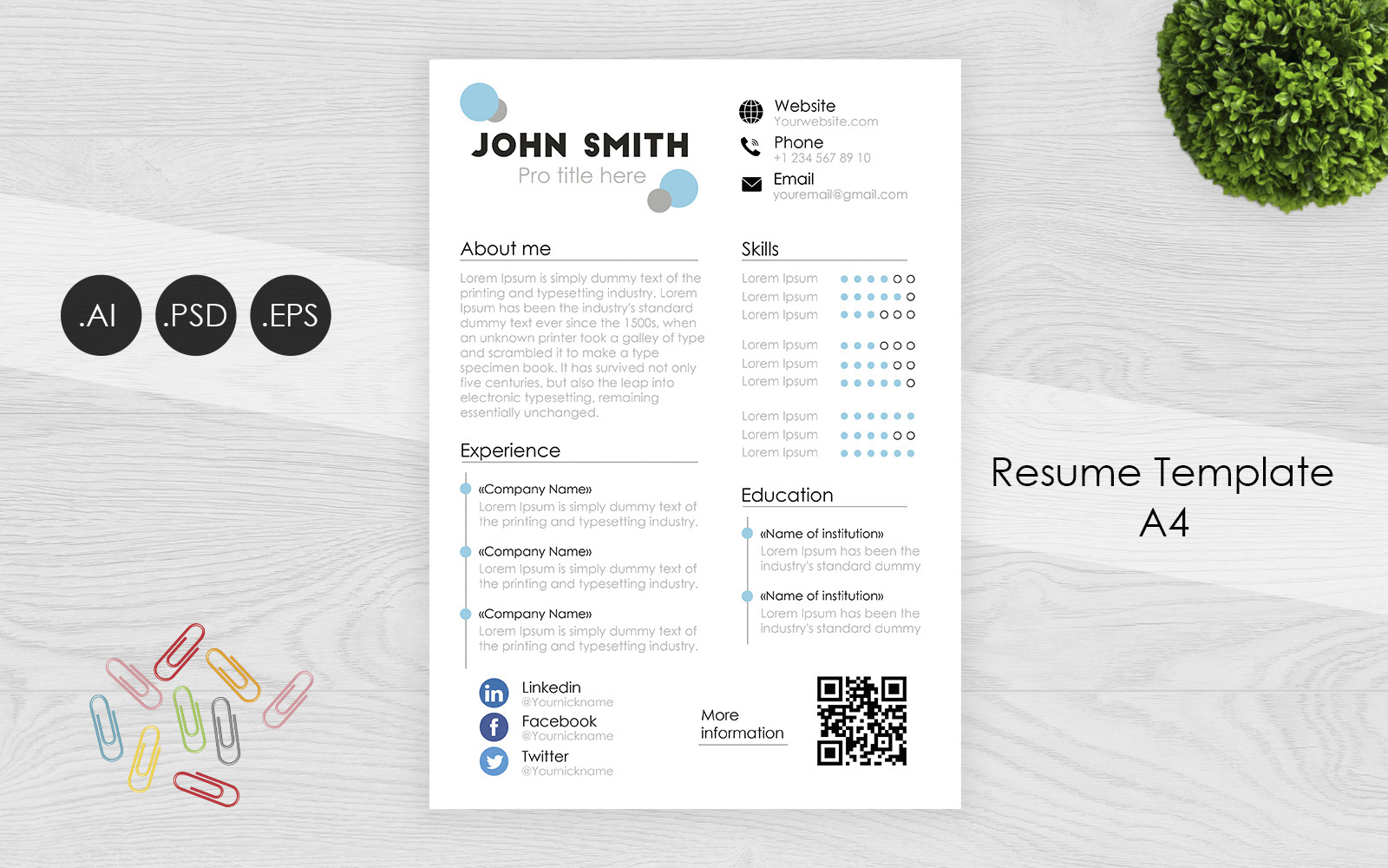 Download Резюме "Professional AI / PSD / EPS Resume Template" / Professional AI / PSD / EPS Resume Template - Резюме на тему графика resume,clean,template,modern,photoshop,professional,print,us,letter,powerpoint,job,award,simple,creative,icons,skills,swiss,design,employment,curriculum