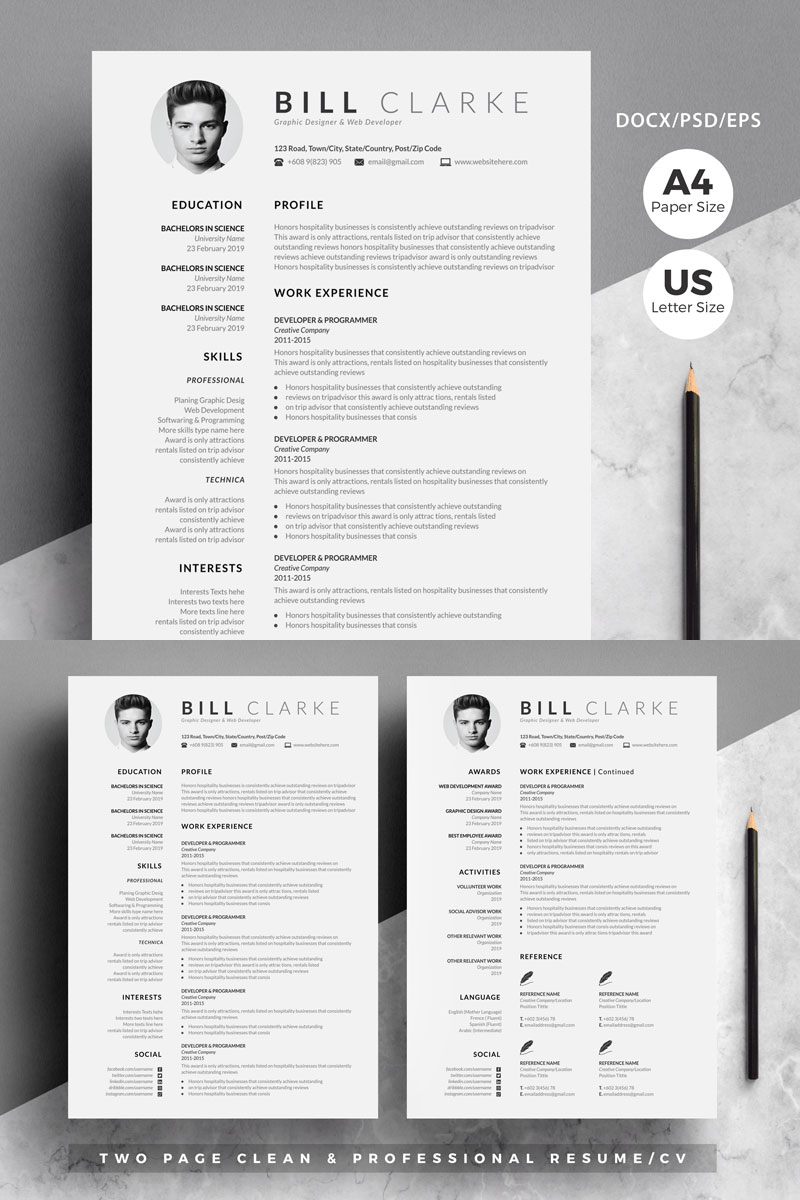 Download Резюме "Professional - Bill Clarke Resume Template" / Professional - Bill Clarke Resume Template - Резюме на тему графика resume,cv,template,clean,creative,professional,minimal,minimalist,word,psd,ai,coverletter,contract,classic