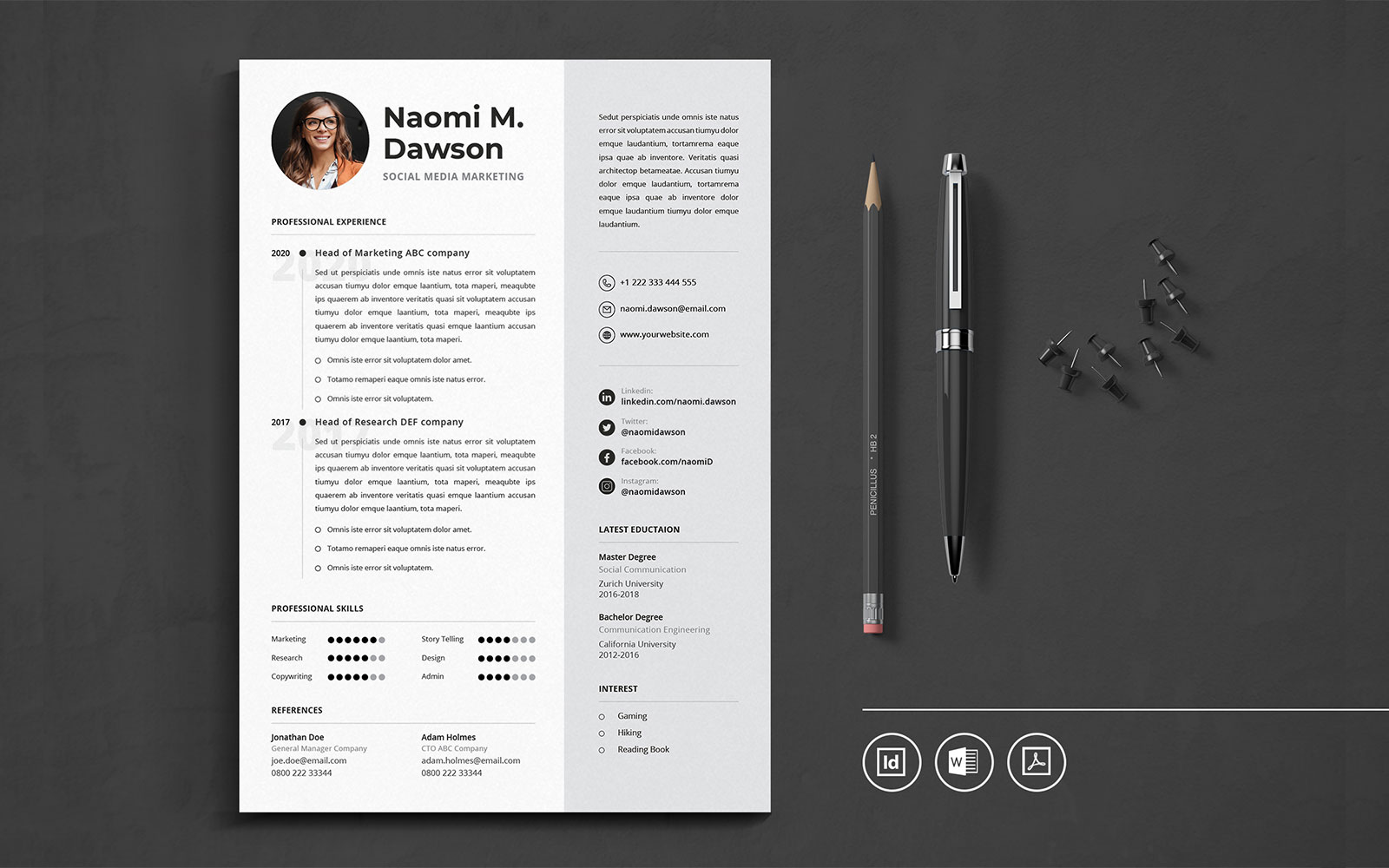 Download Резюме "Professional CV Indesign Vol.20 Resume Template" / Professional CV Indesign Vol.20 Resume Template - Резюме на тему графика resume,cv,minimalist,professional,modern,clean,minimal,business,hiring,apply,job,entrepreneur,indesign,word,pdf