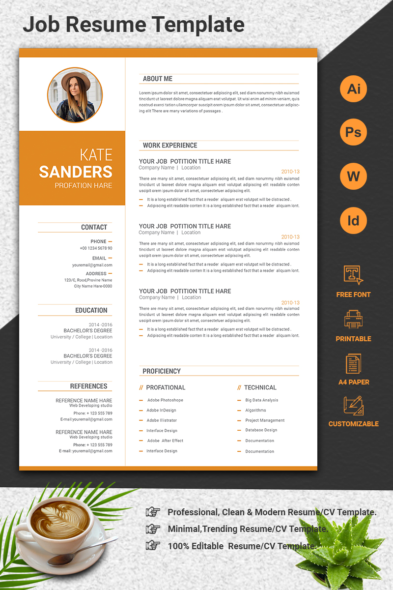 Download Резюме "Professional CV Resume Template" / Professional CV Resume Template - Резюме на тему графика cv rsume template fully layered a4 paper print ready modern minimal letter profationary crreative eaditable word indesign cvdesign profational