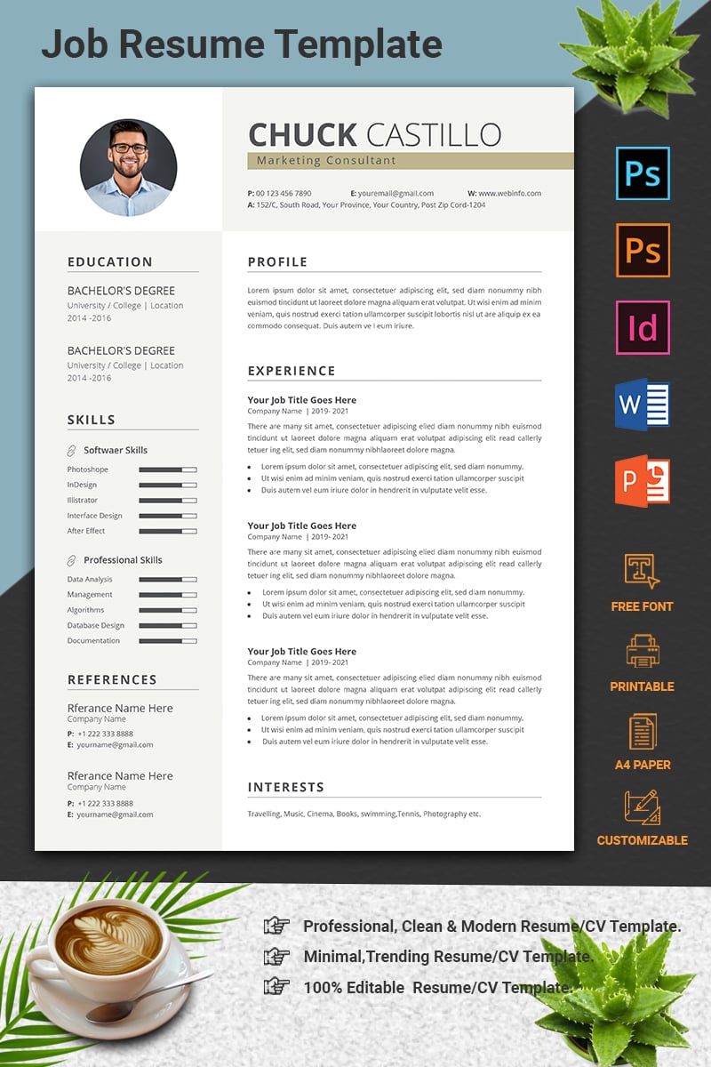 Download Резюме "Professional CV Resume Template" / Professional CV Resume Template - Резюме на тему графика cv rsume template fully layered a4 paper size modern minimal letter profational creative eaditable word indesign cvdesign docx jobecv elegent