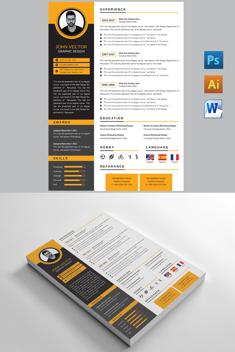 Download Резюме "Professional Orange Resume Template" / Professional Orange Resume Template - Резюме на тему графика a4 business clean complete cover letter creative curriculum vitae cv design doc docx editable employment flexible fresh international job modern