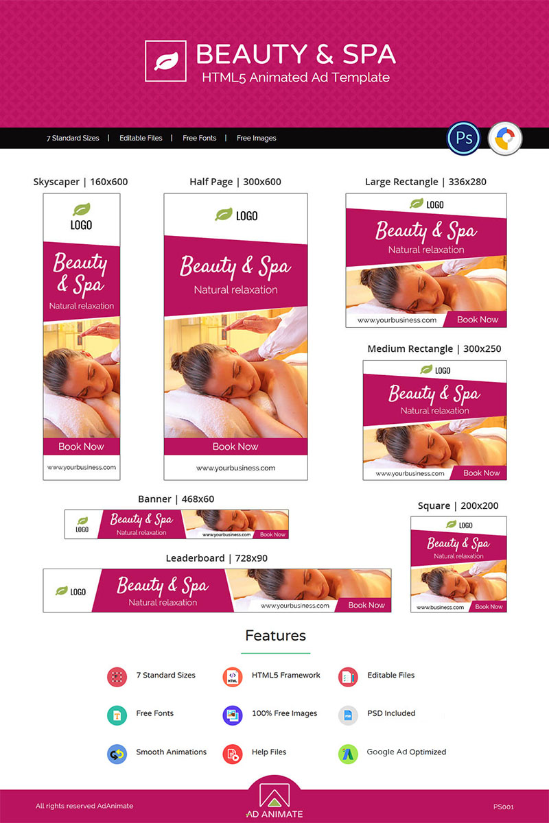 Download Animated Banner "Professional Services | Beauty & Spa Animated Banner" / Professional Services | Beauty & Spa Animated Banner - Animated Banner на тему графика beauty salon massage parlor html5 ad online web booking template modern clean attractive marketing promotion business doubleclick adroll google relaxation