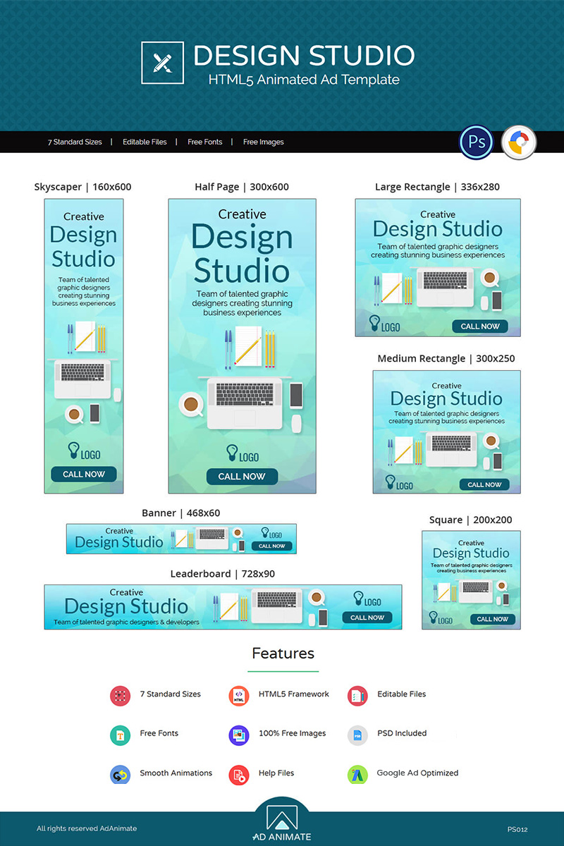 Download Animated Banner "Professional Services | Design Studio Ad Animated Banner" / Professional Services | Design Studio Ad Animated Banner - Animated Banner на тему графика design-studio web graphic creative agency company freelance template clean modern business ad banner html5 html animated promotion