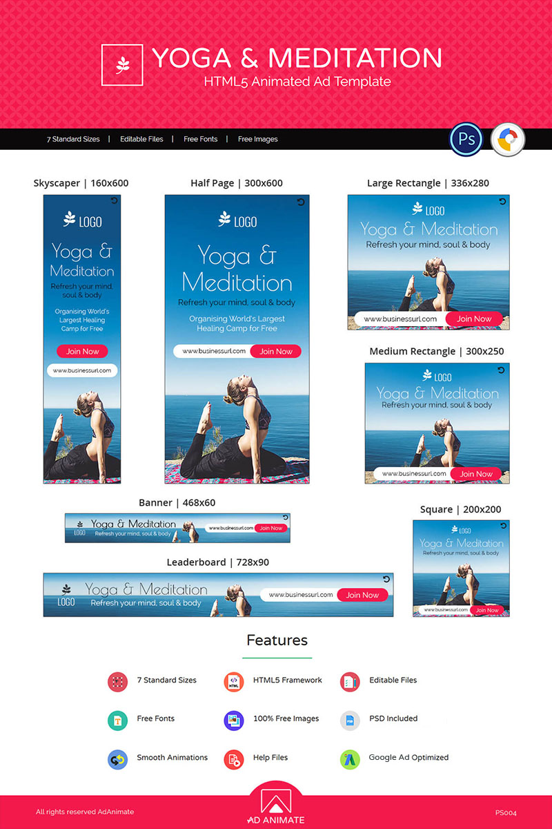 Download Animated Banner "Professional Services | Yoga & Meditation Ads Animated Banner" / Professional Services | Yoga & Meditation Ads Animated Banner - Animated Banner на тему графика yoga fitness wellness meditation banner web design templates html html5 online google soul health doubleclick photoshop ad ads exercise