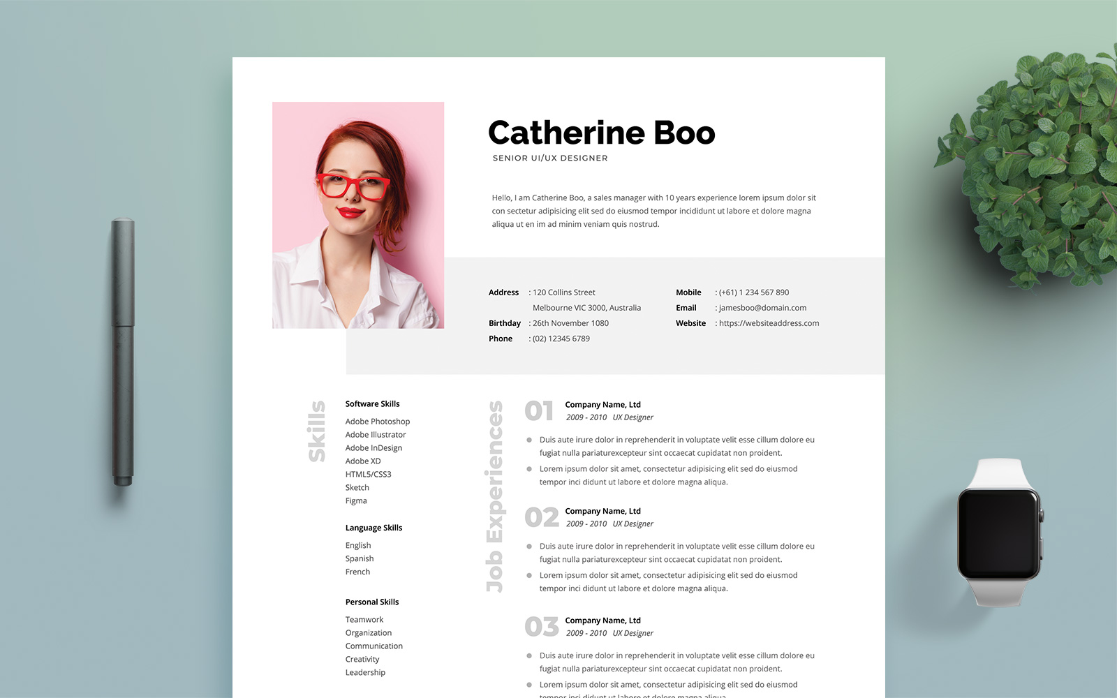 Download Резюме "Professional Woman Resume Template" / Professional Woman Resume Template - Резюме на тему графика professional,resume,cv,clean,business,corporate,documents,paper,curriculum,vitae,job,works,fresh,graduate