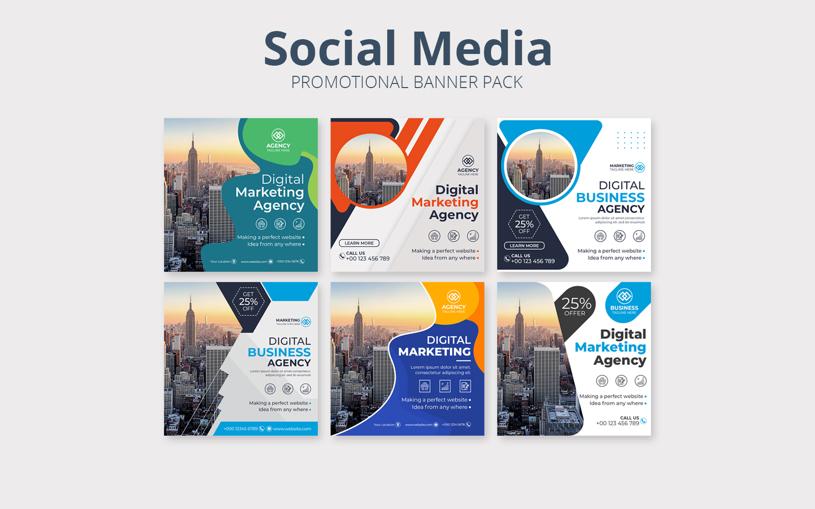 Download Шаблон для соцсетей "Promotional Business Banner Pack Social Media Template" / Promotional Business Banner Pack Social Media Template - Шаблон для соцсетей на тему графика banner,sale,template,instagram,marketing,promotion,social,corporate,modern,professional,ads,agency,set,social media banner,ads banner template,pack,minimal,presentation,abstract,social media