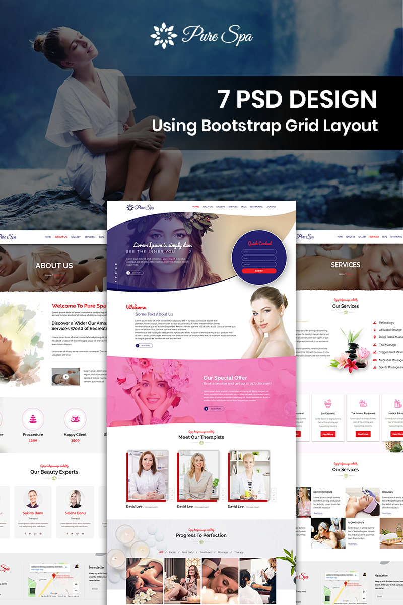 Download PSD шаблон "Pure Spa - Beauty Spa PSD Template" / Pure Spa - Beauty Spa PSD Template - PSD шаблон на тему товары для спа beauty spa fashion style lifestyle