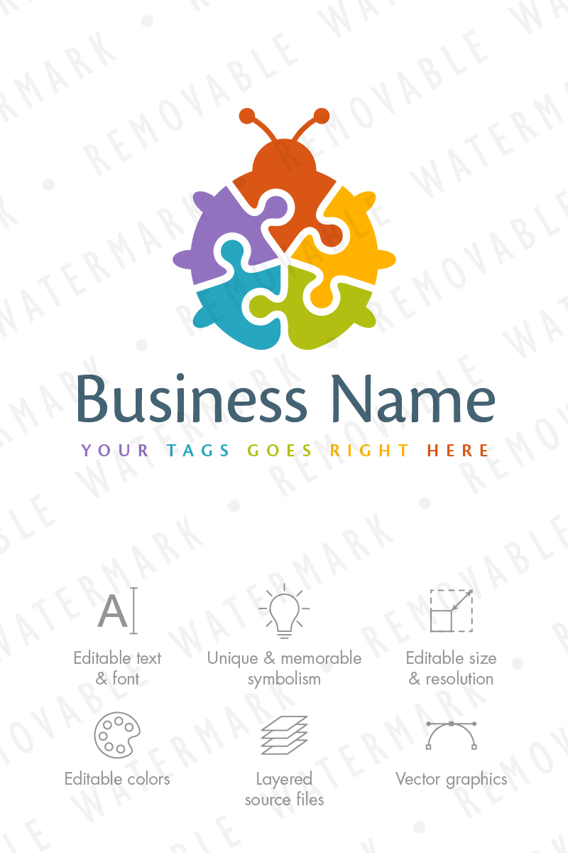 Download Шаблон логотипа "Puzzle Ladybug Logo Template" / Puzzle Ladybug Logo Template - Шаблон логотипа на тему графика animal bug circle puzzle solution colorful unity ladybug jigsaw piece insect cooperation split alliance beetle multipurpose versatility logo design template