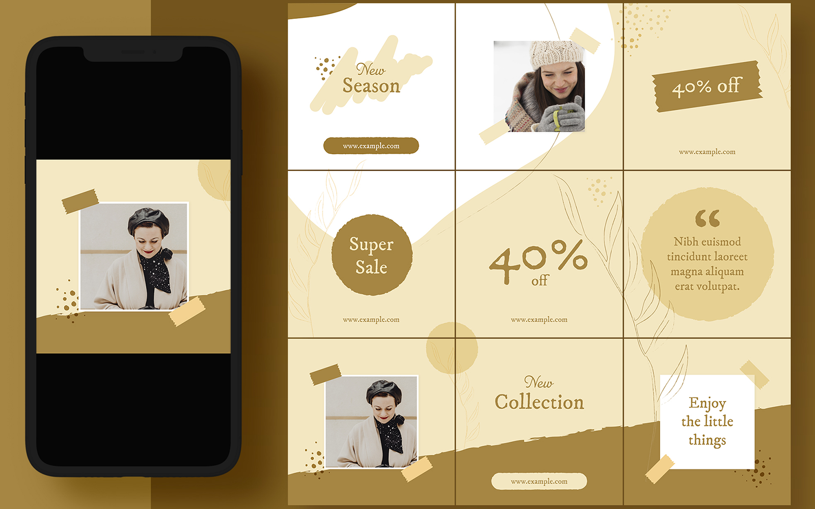 Download Шаблон для соцсетей "Puzzle Layout Social Media Template" / Puzzle Layout Social Media Template - Шаблон для соцсетей на тему графика post,social media,puzzle,sale,shop,discount,sold,brush,season,collection,instagram,store
