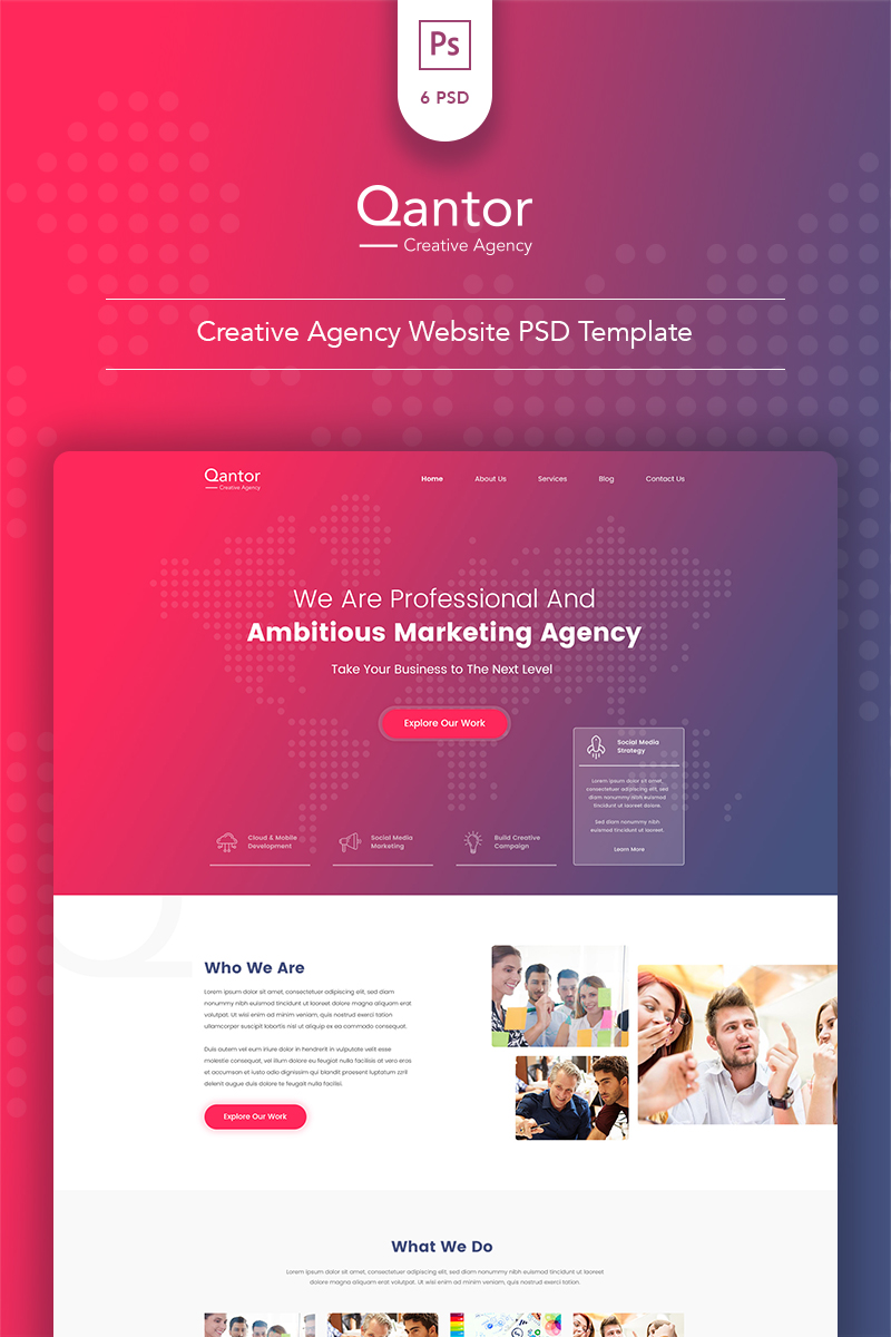 Download PSD шаблон "Qantor - Creative Agency Office PSD Template" / Qantor - Creative Agency Office PSD Template - PSD шаблон на тему информационные технологии agency business company profile corporate creative psd services social media template web development