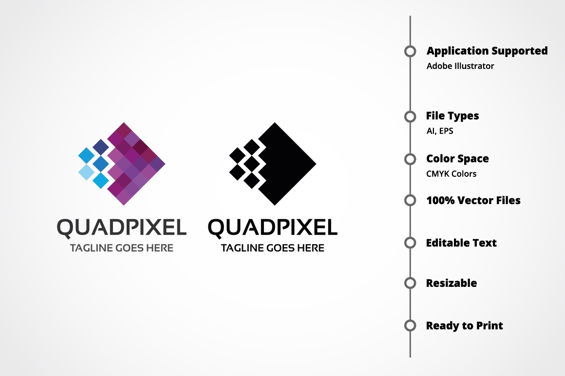 Download Шаблон логотипа "Quadpixel Logo Template" / Quadpixel Logo Template - Шаблон логотипа на тему графика brand,clear,consultant,corporate,dimension,floor,identity,investment,marketing,media,mirror,modern,network,professional,quad,quadrangle,quadrilateral,real estate,solution,square