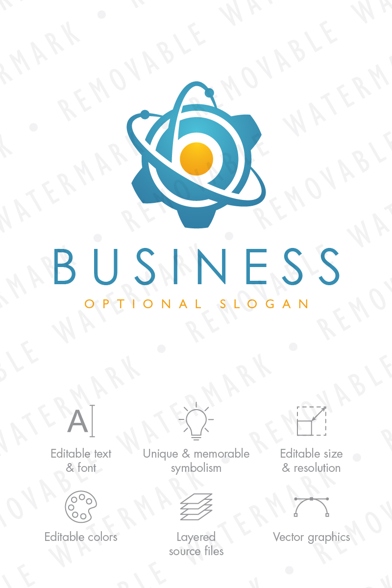 Download Шаблон логотипа "Quantum Engineering Logo Template" / Quantum Engineering Logo Template - Шаблон логотипа на тему графика atom science computer energy space research development core quantum future gear molecule engineering cog nuclear power technology logo design template